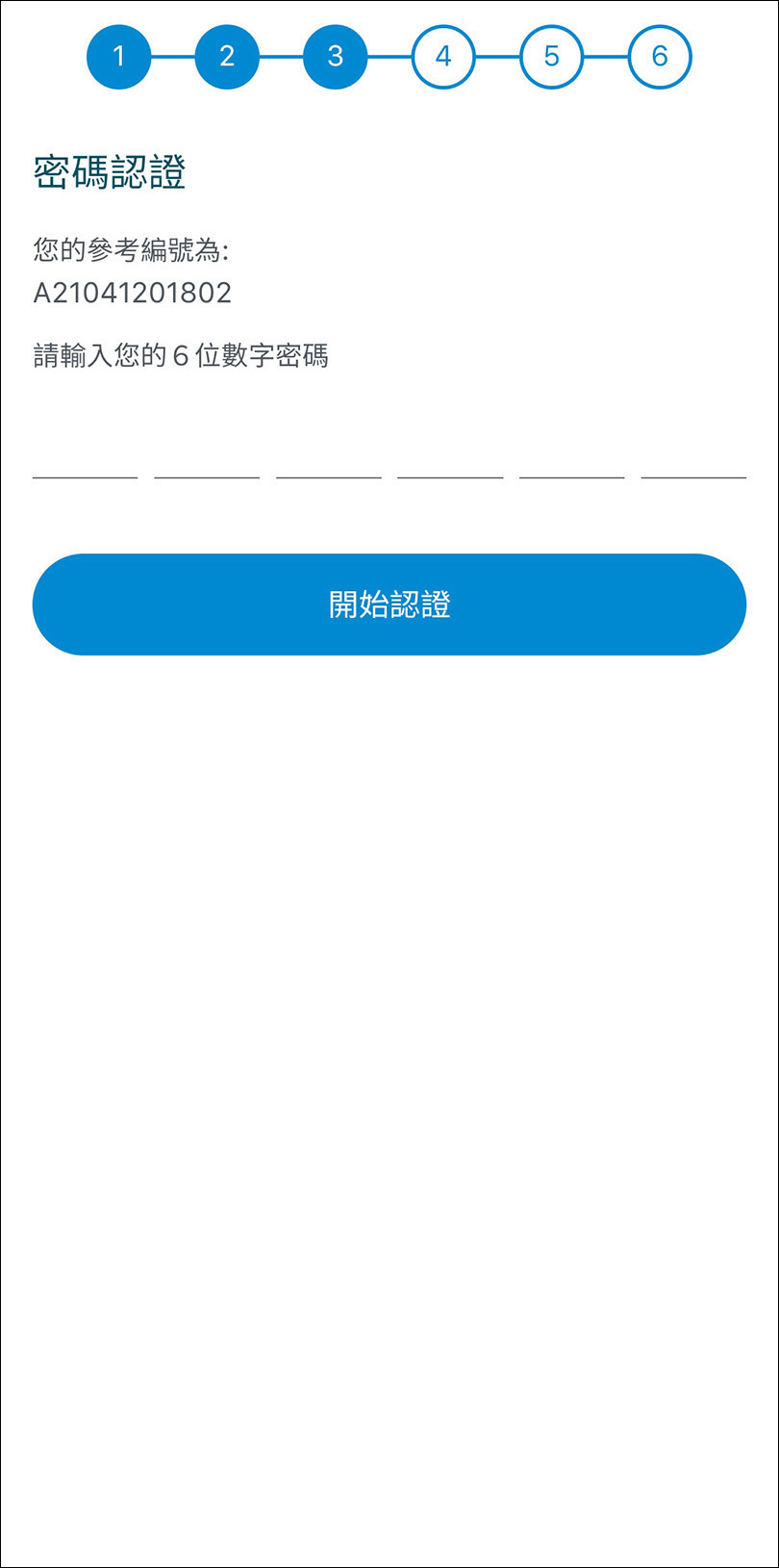第三步:輸入您已自訂的6位數字密碼