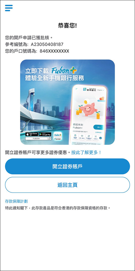 您的戶口已成功開立!
