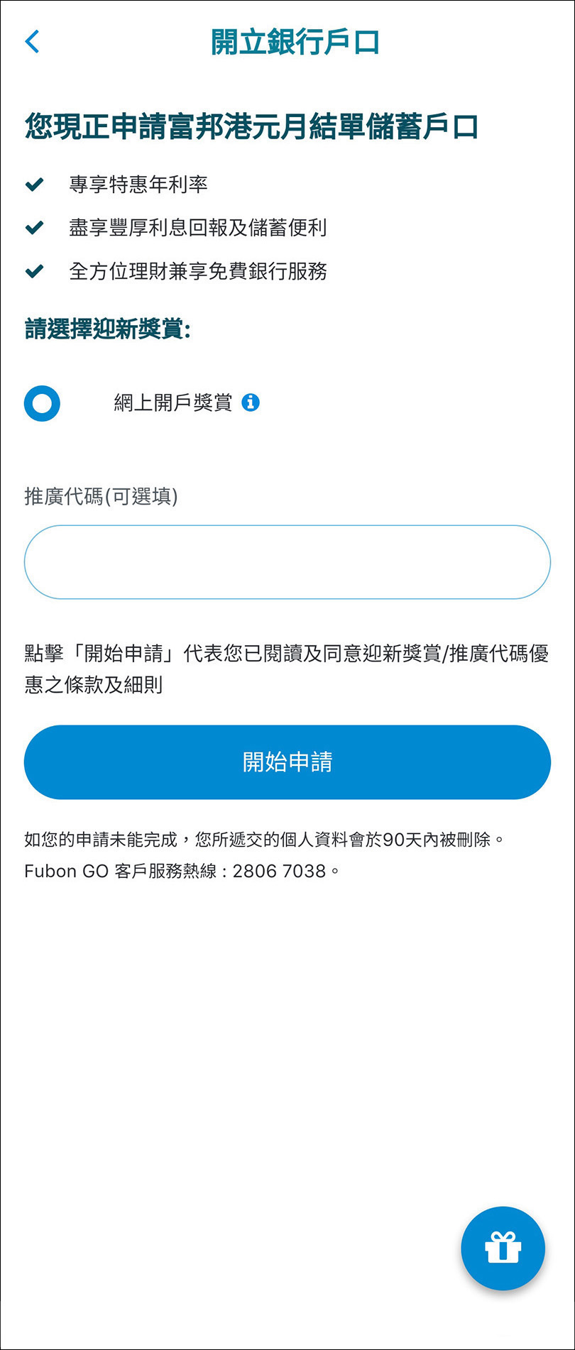 繼續開戶申請