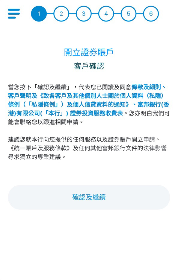 第五步:閱讀及確認條款及細則。